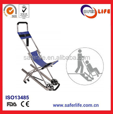 Using high quality aluminum alloy materials, matching pieces of aluminum alloy die casting. The sponge cushion, the wounded and the sick lie down comfortably, folding leg mechanical structure, through the left handle control. Only an ambulance crew put the patient on the ambulance. The fixed bracket is fixed and the ambulance. The stretcher can be separated, can quickly to rescue patients.